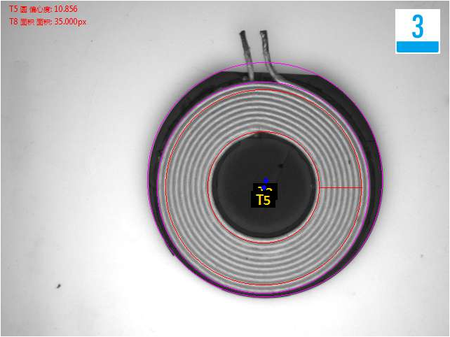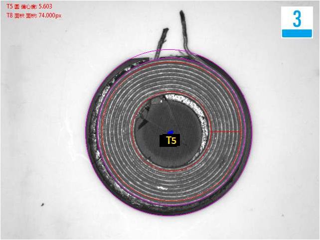 頂部檢測線圈偏移、臟污不良品效果分析圖: